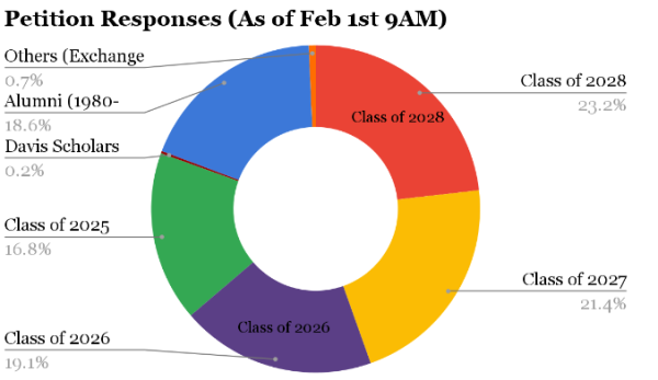 Within six days, the petition garnered over 850 signatures and more than 120 personal statements from students, alums and faculty. As of Feb. 2, the petition had received 904 responses.